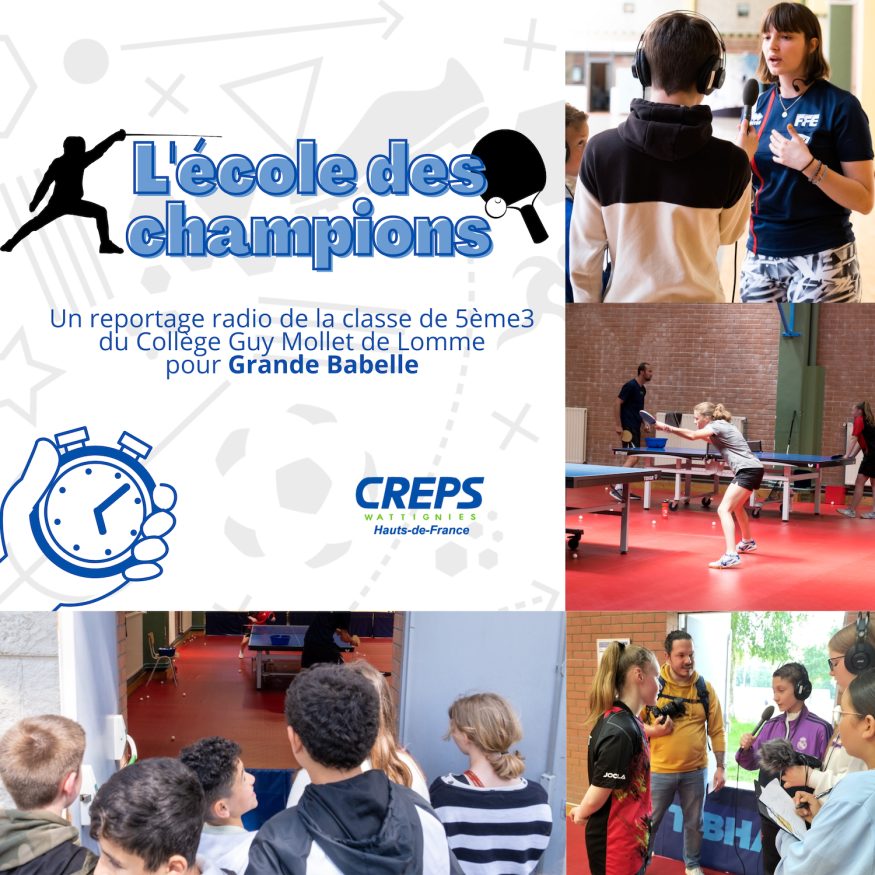 C'est pour répondre à ces questions que les élèves de 5°3 de monsieur Gervais sont allés mener leur enquête dans un lieu emblématique de la préparation au sport de haut -niveau de la région : le CREPS (Centre de Ressources, d'Expertise et de Performance Sportive ) de Wattignies. Sous la forme d'un reportage radio, ils ont croisé le point de vue des différents acteurs (Jeunes sportifs, mais aussi entraîneurs, cadres et personnels de santé) pour comprendre comment on devient un jeune champion épanoui.